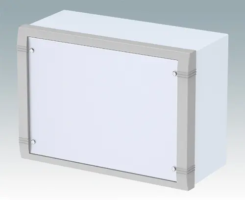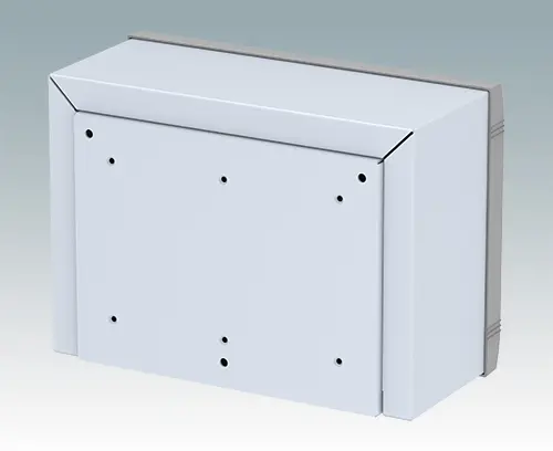 Modern aluminium wall mount enclosure for indoor electronics equipment. The enclosure provides total access to the electronics during installation on the wall. Stylish design with die cast front bezel, top cover and 'L' shape rear section. Order front panels separately.