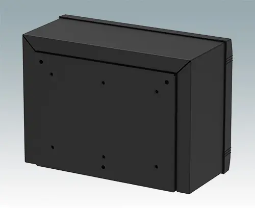 Modern aluminium wall mount enclosure for indoor electronics equipment. The enclosure provides total access to the electronics during installation on the wall. Stylish design with die cast front bezel, top cover and 'L' shape rear section. Order front panels separately.