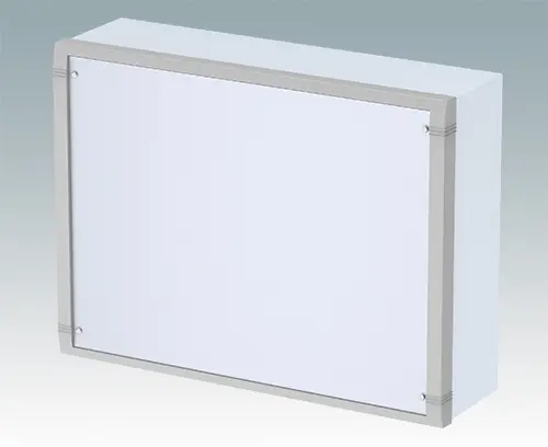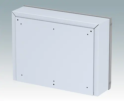 Modern aluminium wall mount enclosure for indoor electronics equipment. The enclosure provides total access to the electronics during installation on the wall. Stylish design with die cast front bezel, top cover and 'L' shape rear panel. Order front panels separately.