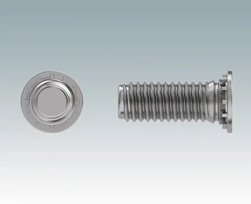 Flush mounted fixing stud which is press fitted to a hole in the panel.