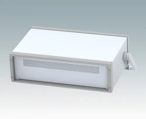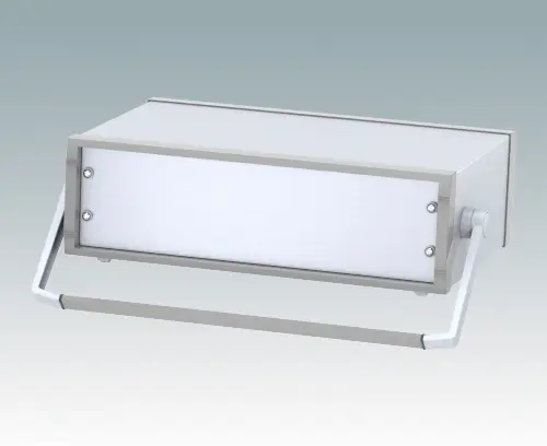 Stylish 19" instrument case for mounting 3U subracks, chassis or front panels. Portable version with metal carry handle/bail arm. Robust design with two die cast front bezels and fabricated case body. The base panel and rear panel are ventilated. Internal chassis runners support the equipment. Supplied with pre-fitted with ABS tilt feet.