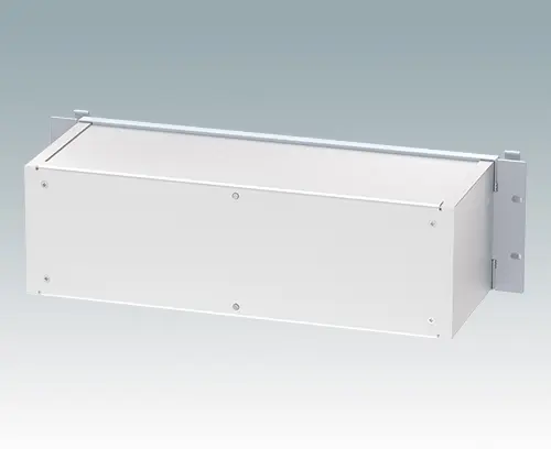 Modern and robust 19" rack case with integrated 'comfort handles'. All aluminium design with attractive die cast front bezel, extruded side panels with internal PCB/chassis guide rails, rear panel and flat top and base panel. Open front panel aperture means the case does not have to be removed from the rack in order to access the electronics. Base panel is punched to accept accessory tilt feet. Order front panels separately.