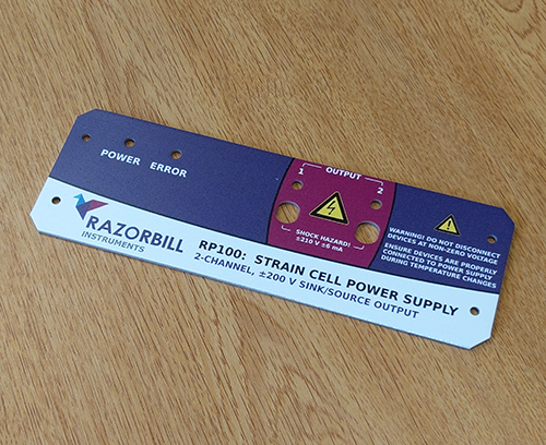 We also need accurate detail of the artwork to be produced so we understand exactly how you want it to look, and how it is to be positioned on the panel or enclosure e.g. a dimensioned drawing with print colour information if possible in CMYK.