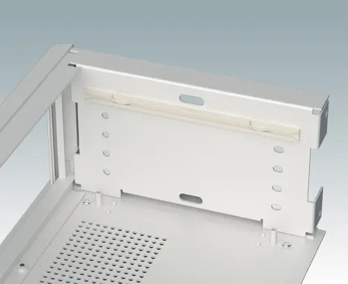 The case is supplied with a rear panel and four ABS feet with tilt legs. Ventilation slots are provided in the base and rear panel. Order front panels separately.