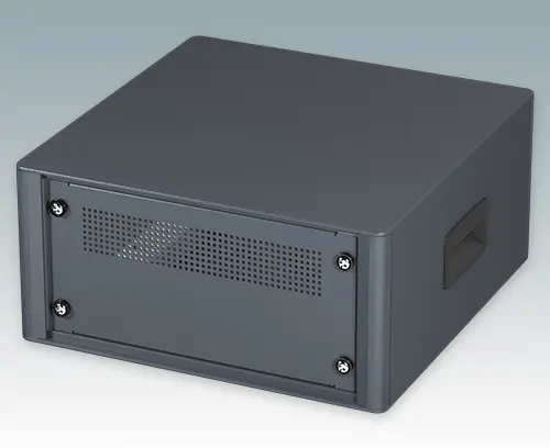Modern and highly attractive 10.5" instrument enclosure for mounting 3U subracks (42HP), chassis or front panels. Conforms to DIN 41494 & IEC 297. Stylish front and rear bezels are fitted to the aluminium case body. Clip-on trims at the front and rear hide the assembly screws giving a very professional appearance. All case panels fitted with M4 threaded pillars for earth connection. The case is supplied with a rear panel, two ABS side handles and four ABS non-slip feet. Ventilation slots are provided in the base and rear panel. Internal chassis runners support the 10.5" equipment.