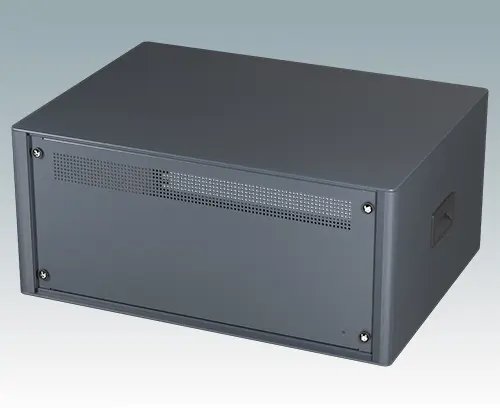 The case is supplied with a rear panel, two ABS side handles and four ABS non-slip feet. Ventilation slots are provided in the base and rear panel. Internal chassis runners support the 19" equipment.