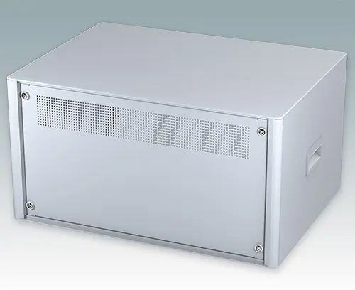 Modern and highly attractive 19" instrument enclosure for mounting 6U subracks (84HP), chassis or front panels. Conforms to DIN 41494 & IEC 297-1. Stylish front and rear bezels are fitted to the aluminium case body. Clip-on trims at the front and rear hide the assembly screws giving a very professional appearance. All case panels fitted with M4 threaded pillars for earth connection.