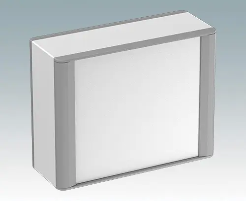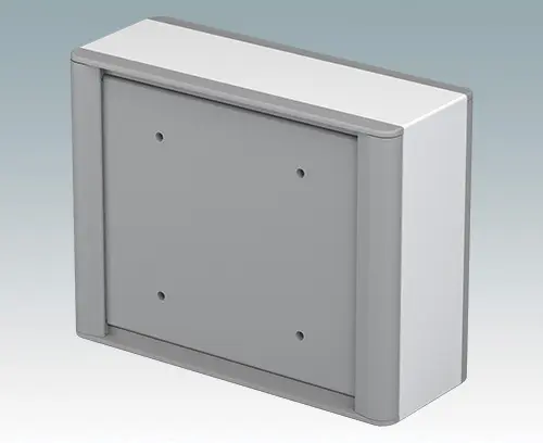 Modern and highly attractive aluminium instrument enclosure for fitting displays, touch screens and HMI electronics. VESA MIS-D 100 mounting points are provided on the rear panel for fitting the unit to a standard VESA control arm or mounting bracket. Stylish front and rear diecast bezels are fitted to the case body. Clip-on trims at the front and rear hide all the assembly screws, giving a very professional appearance. The base panel on the underside provides space for cable entry. M3 PCB mounting pillars are provided inside. The assembly extrusions also have M3 mounting holes and guide rails for fitting internal plates. M4 earth studs are fitted to all parts; some studs can also be used with retaining straps to hold the front/rear panels during maintenance. Front panels are sold separately. Accessories include a wall mounting kit, a pole mounting bracket and an internal mounting plate.