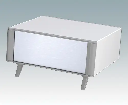 The case is supplied with a rear panel and four ABS feet with tilt legs. Ventilation slots are provided in the base and rear panel. Order front panels separately.