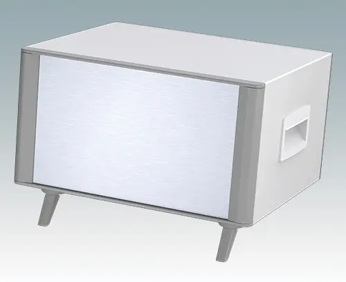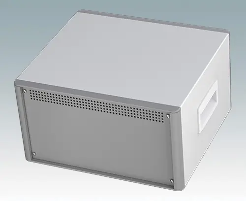 The case is supplied with a rear panel, two ABS side handles and four ABS feet with tilt legs. Ventilation slots are provided in the base and rear panel. Order front panels separately.